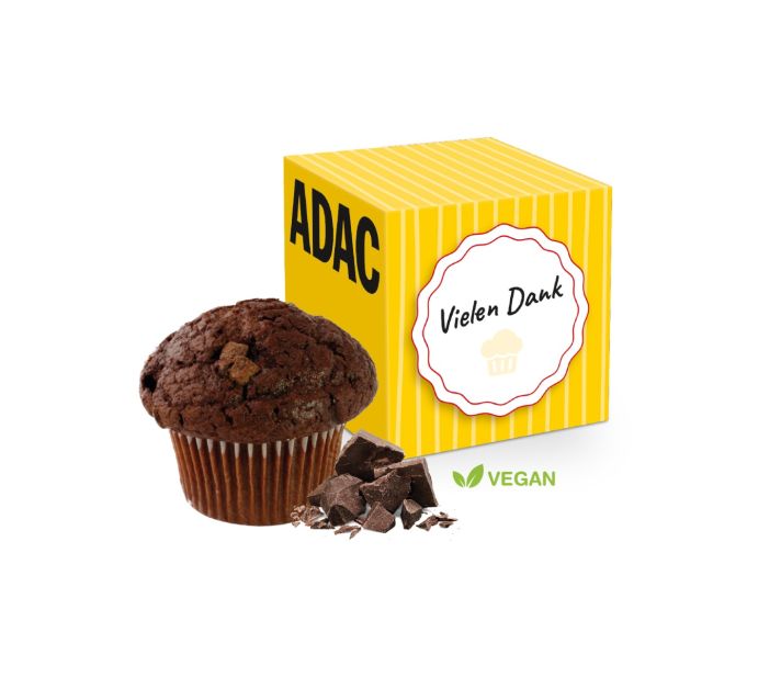 Das Original! Veganer Kuchengenuss! Mit dem leckeren Kuchenmeister Muffin „Double Choc“ liegen Sie immer richtig. Der saftige Muffin ist vollmundig im Geschmack und verführt mit einem lockeren Teig, der mit feinen Schokostückchen zubereitet wurde. Produktdetails: Kuchenmeister Muffin in einer individuellen Werbekartonage. Nachhaltigkeit: Für jede Bestellung mit uns wird ein Baum über GROW MY TREE gepflanzt. Wir verwenden FSC® zertifizierten Karton aus nachhaltiger Forstwirtschaft und anderen kontrollierten Quellen.