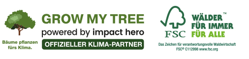 • Für jede Bestellung mit uns wird ein Baum über GROW MY TREE gepflanzt. Wir verwenden FSC® zertifizierten Karton aus nachhaltiger Forstwirtschaft und anderen kontrollierten Quellen.